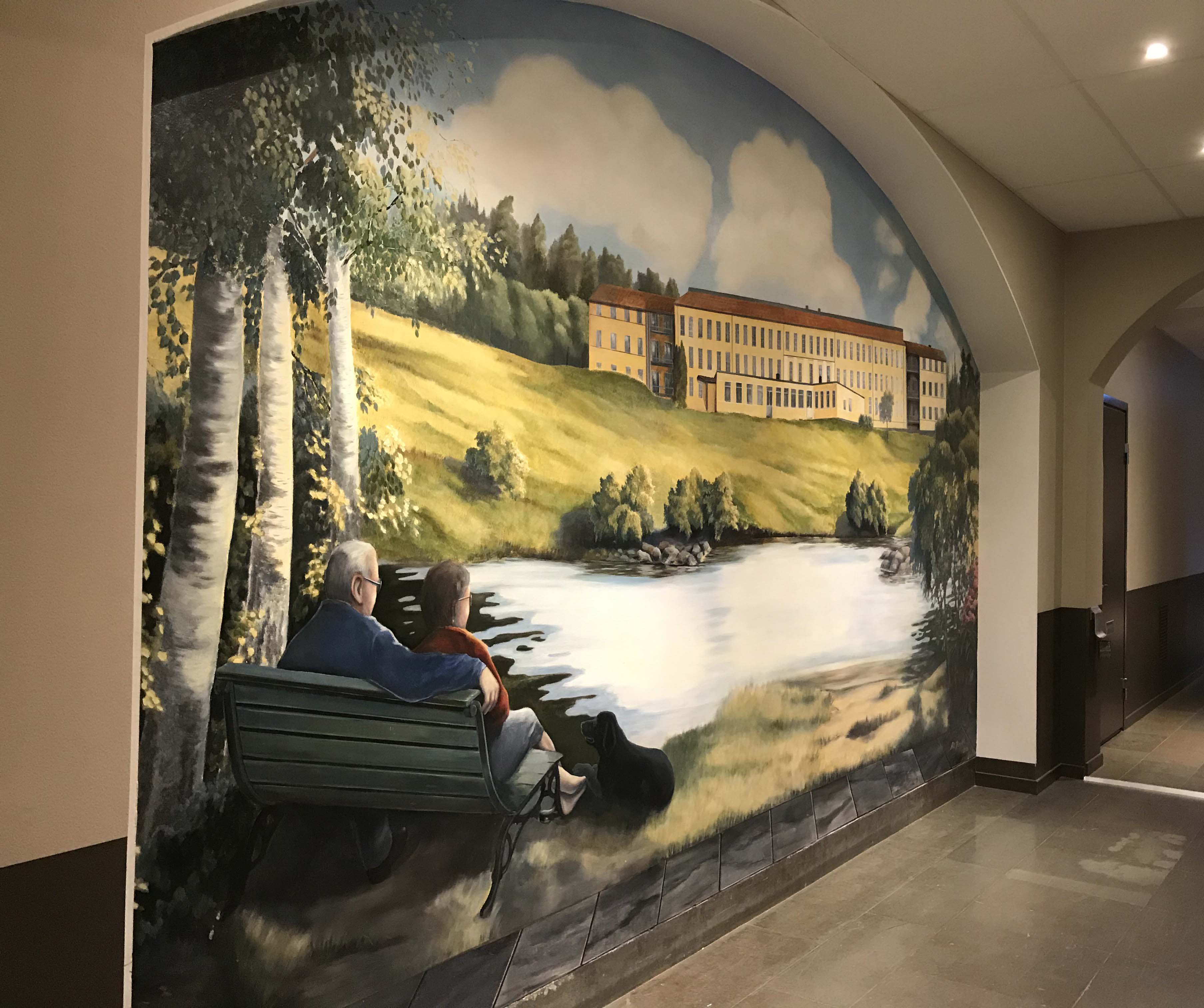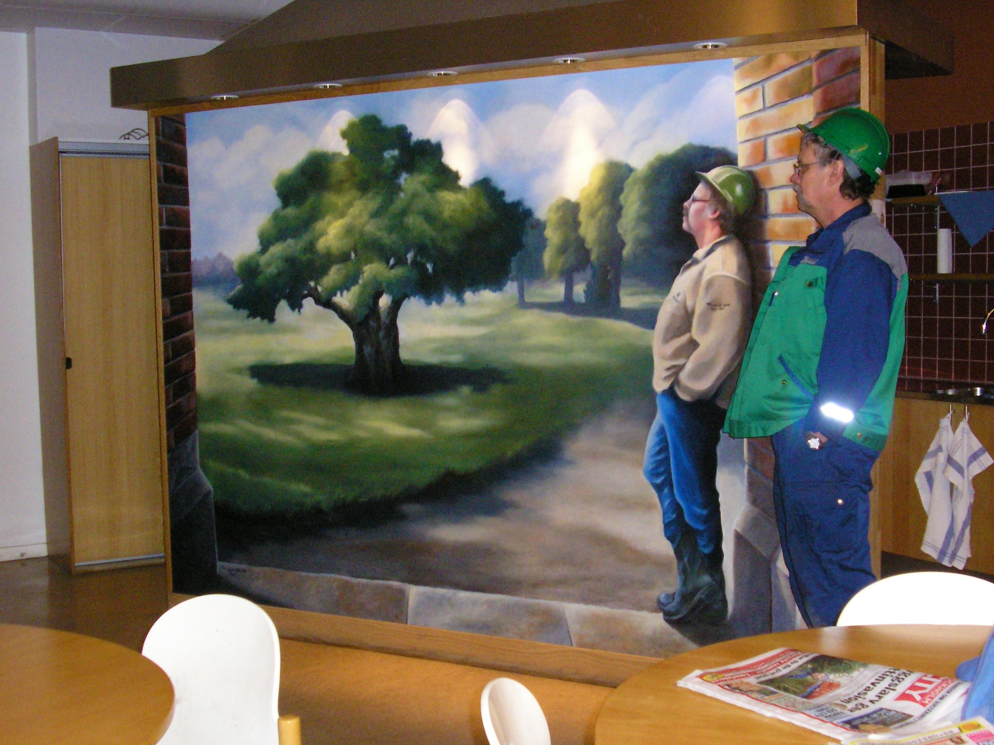 målning i olja på duk i storlek 2x3 m. i lunchrum på Fortum i Stockholm, modellen finns med på bilden