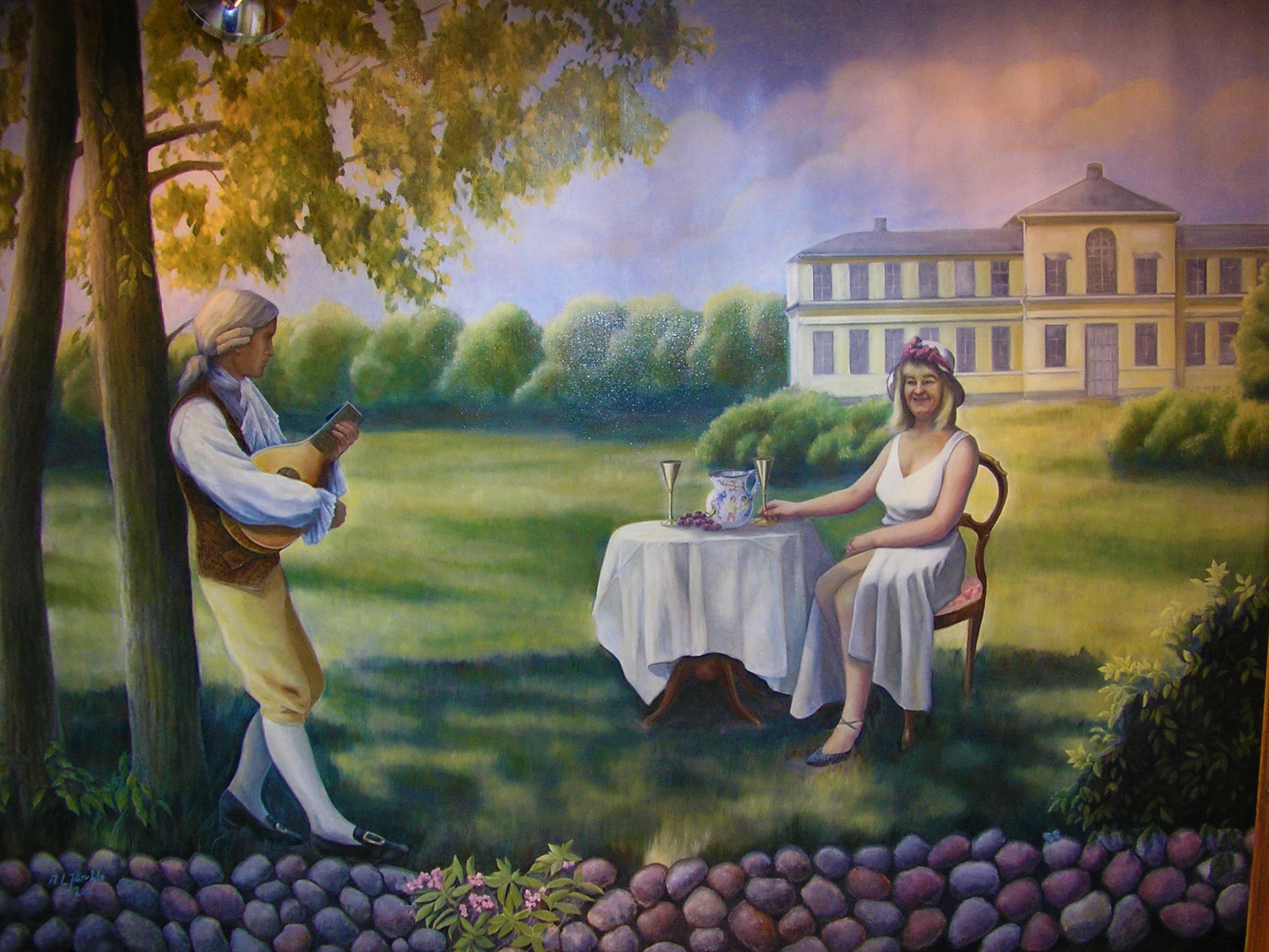 ett beställningsarbete, en olja på duk, storlek 2x3 m. utförd i ateljé till ett rum i en 1700-tals fastighet