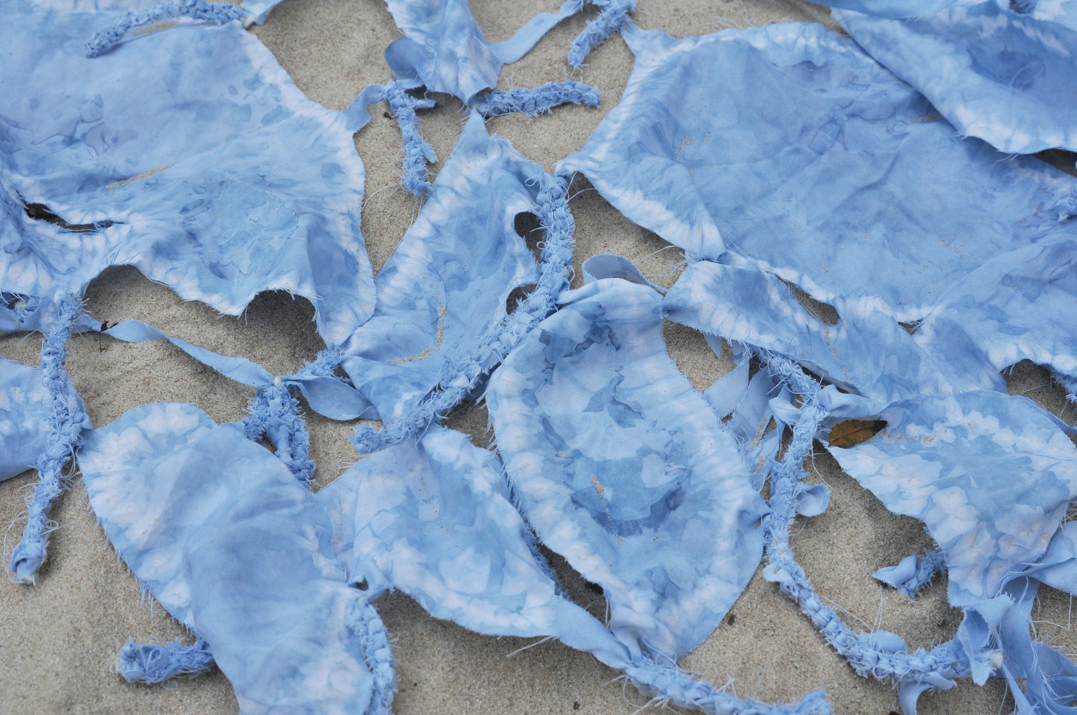 4 = 29 (2019) Recycled fabric, Acrylic yarn with Indigo dye 98x82x1 cm