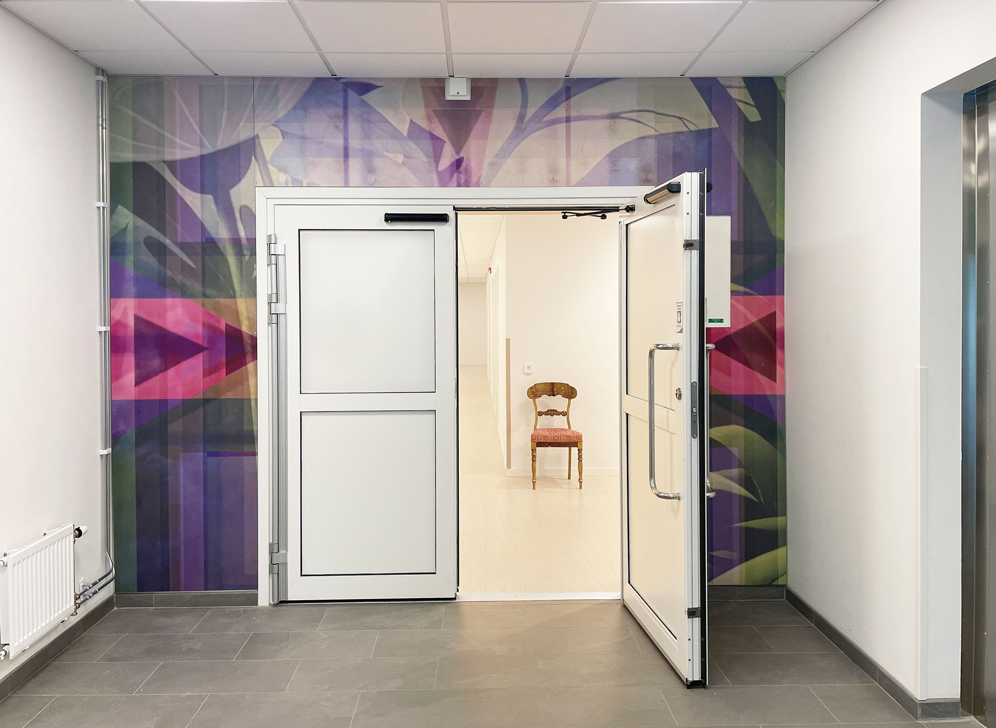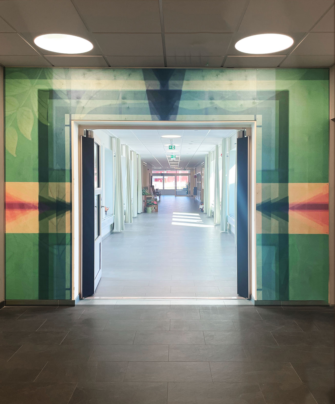 Katarina Löfströms gestaltning Den hemliga trädgården från 2023 är en serie bilder som skapades specifikt för demensboendet Åspegeln i Arboga.