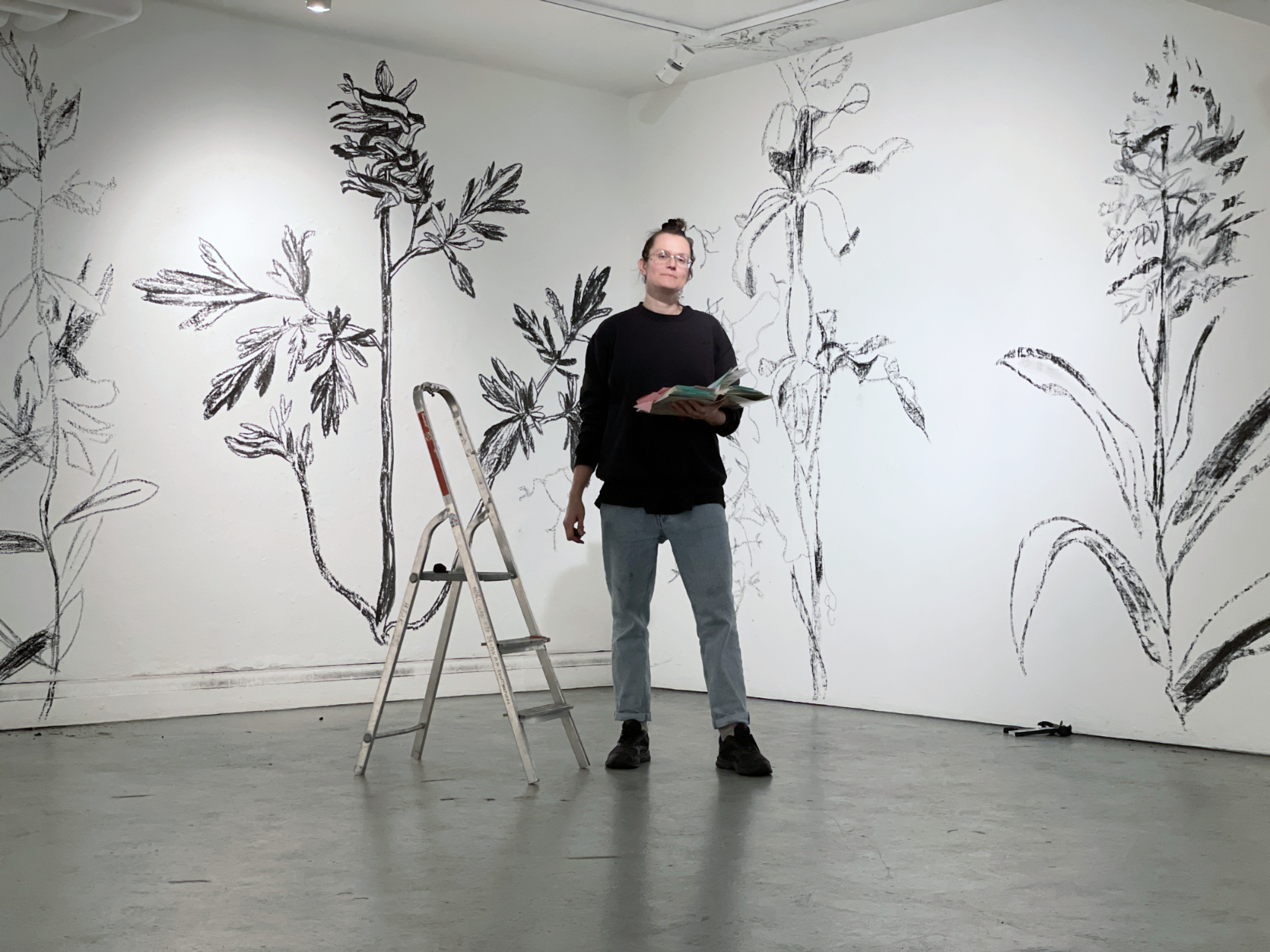 Den tvärdisciplinära konstnären Catja Tonberg arbetar med sammanflätningen av det personliga och det politiska med humor och allvar. I det researchdrivna projektet Växtvärk / Growing Pains tar konstnären avstamp i teori och praktiskt samlande av växtnamn, för att skapa installationer, videos, projektioner och performativa arbetsprocesser med exempelvis teckning.
