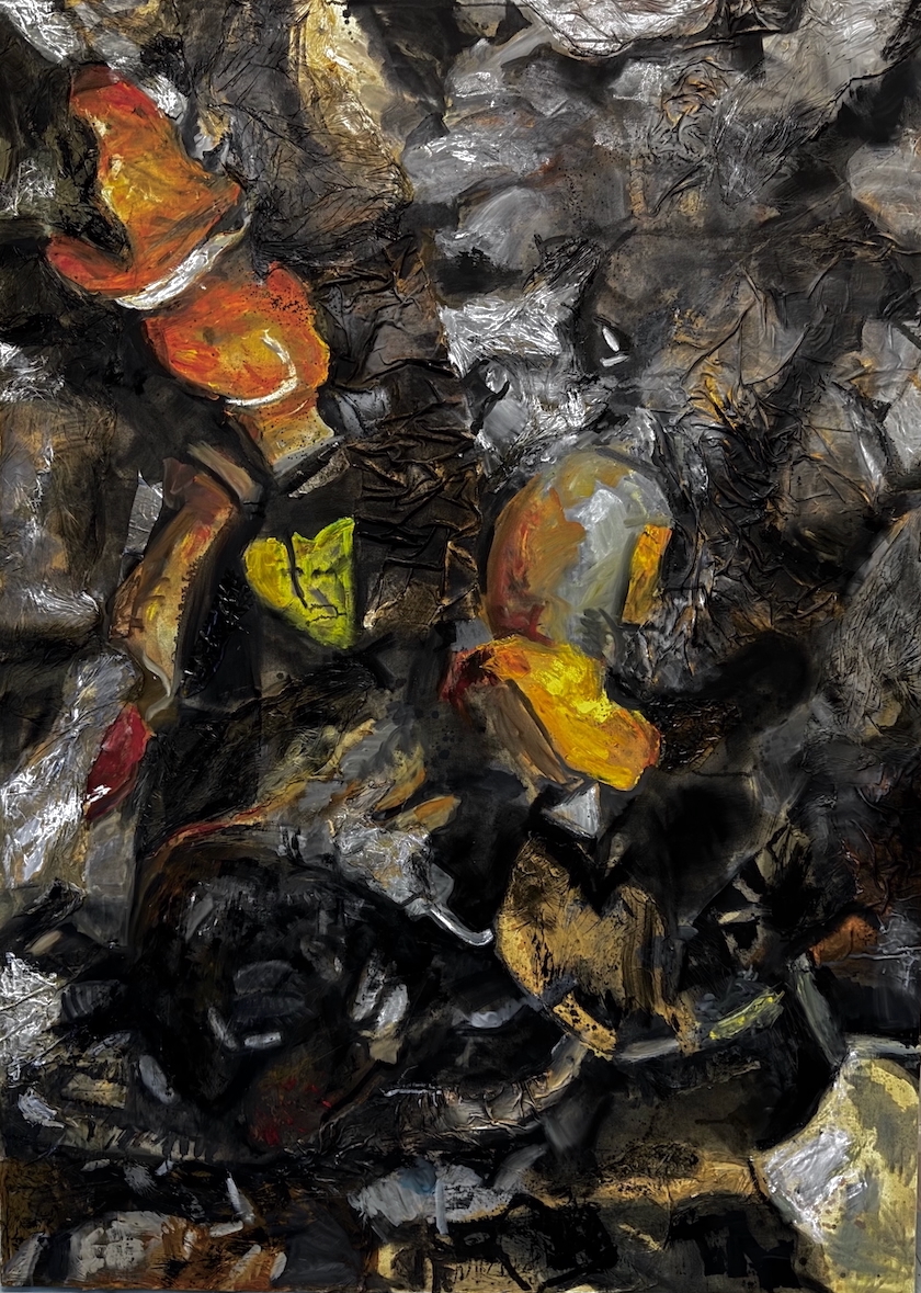 Kompost Vinyl på duk, tyg och plast, 140 x 195 cm. 2024